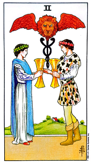 연애운에서 컵2번이 나온다면 감정의 공유로 좋은 시작을 의미하기도 합니다.