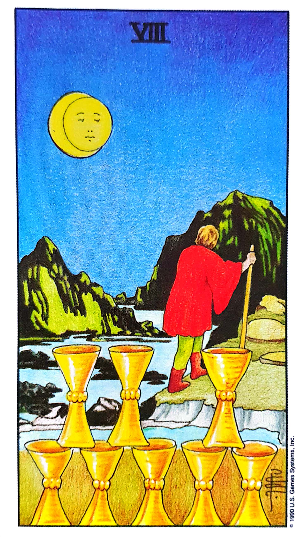 컵 8은 물질적인 면과 정신적인 면의 균형을 나타냅니다.