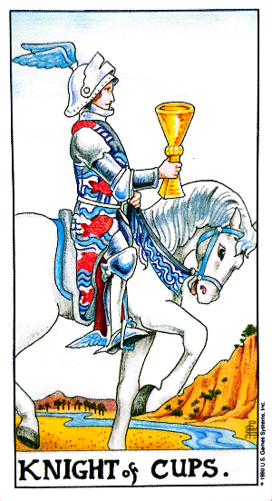 완드의 기사는 열정적으로 달리는 말을 타고 있는데 반해 컵의 기사는 천천히 걸어가는 말을 타고 있습니다.