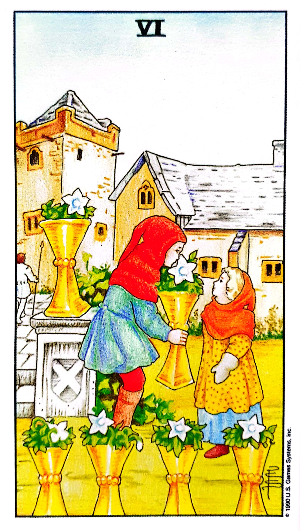 컵 6은 양육과 공생을 나타내는 숫자입니다.