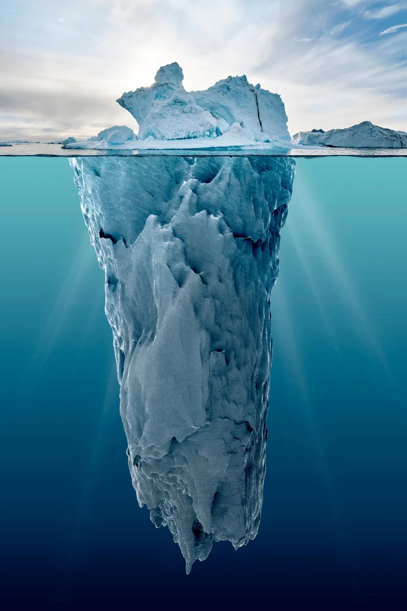의식은 빙산의 일각이고 바다 깊은 곳에 있는 빙산 전체가 무의식이라는 유명한 비유를 상상해 보세요.
